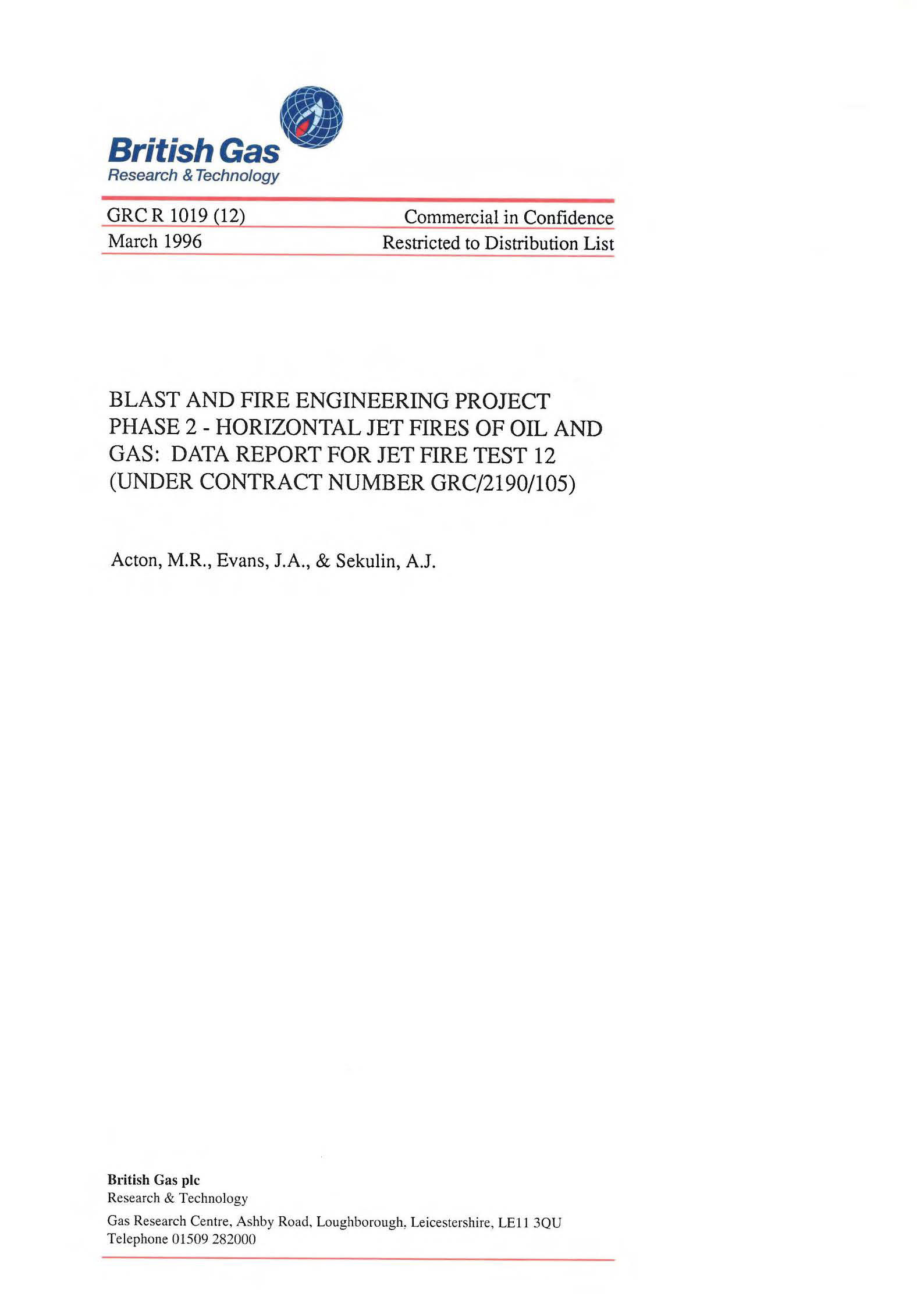 A programme of jet fire tests was undertaken by British Gas over a two-month period, between May and June 1995, under contract to the Steel Construction Institute as part of the industry sponsored ‘Blast and Fire Engineering Project for Topside Structures’. An overview report has been prepared which describes the measurement techniques and equipment used. The overview report also contains a summary of the data from each of the tests. In addition, an individual data report has been prepared for each test. This data report contains the detailed results of measurements taken during Test 12.