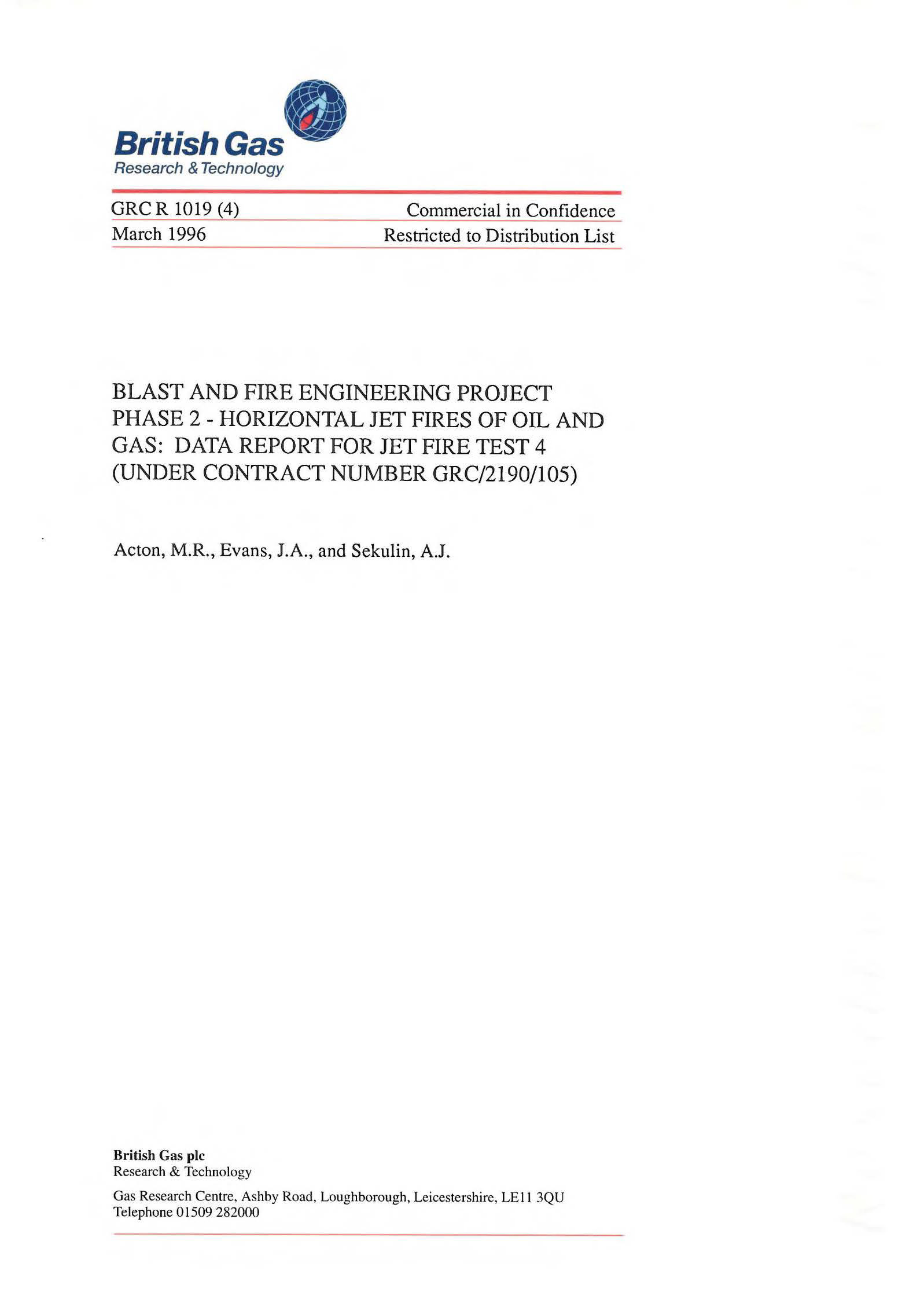 A programme of jet fire tests was undertaken by British Gas over a two-month period, between May and June 1995, under contract to the Steel Construction Institute as part of the industry sponsored ‘Blast and Fire Engineering Project for Topside Structures’. An overview report has been prepared which describes the measurement techniques and equipment used. The overview report also contains a summary of the data from each of the tests. In addition, an individual data report has been prepared for each test. This data report contains the detailed results of measurements taken during Test 4.