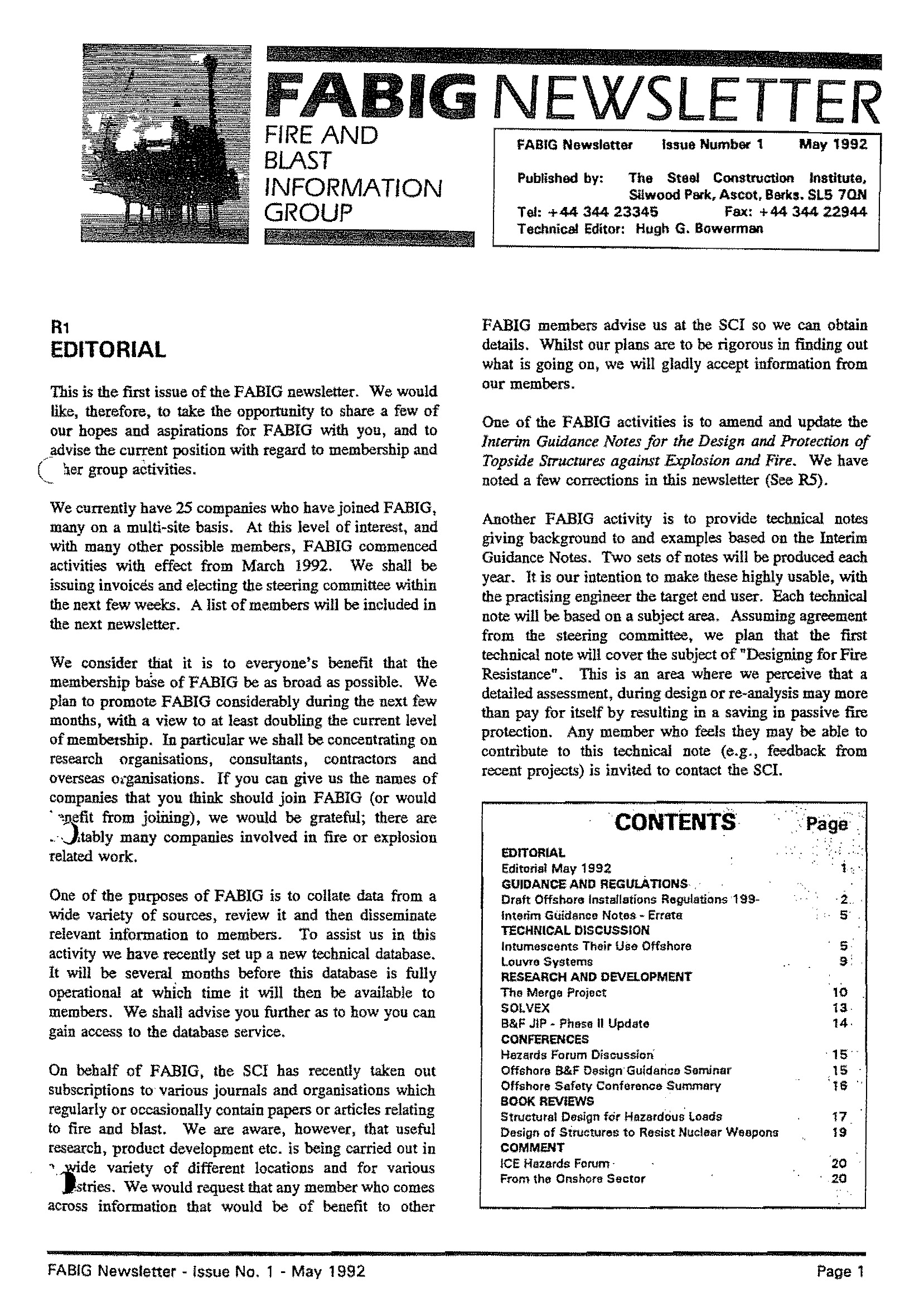 - Offshore Fire & Blast Design Guidance Seminar (The Steel Construction Institute, Feb 1992)