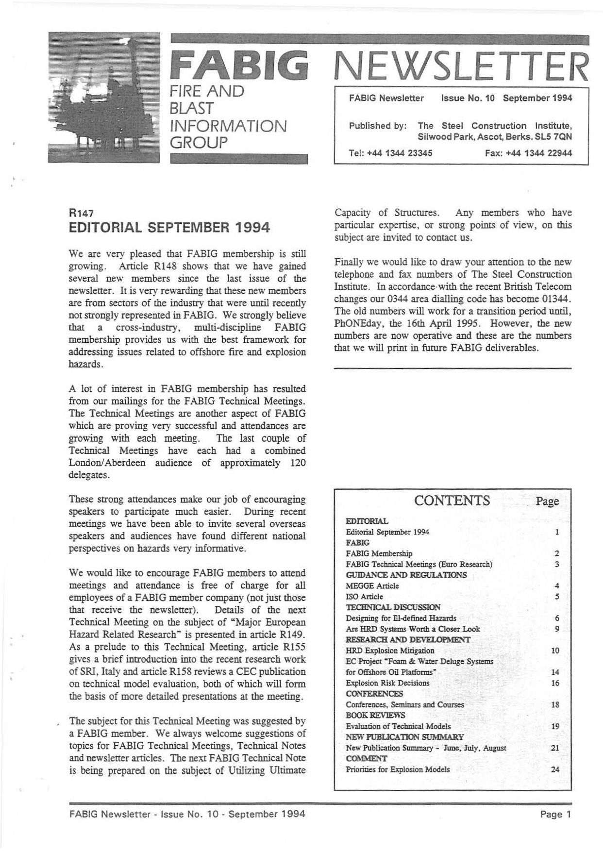 This FABIG Newsletter comprises the following: