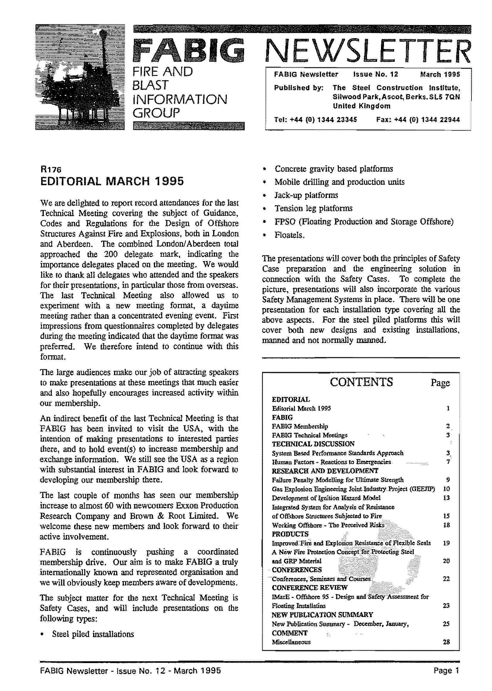 This FABIG Newsletter comprises the following: