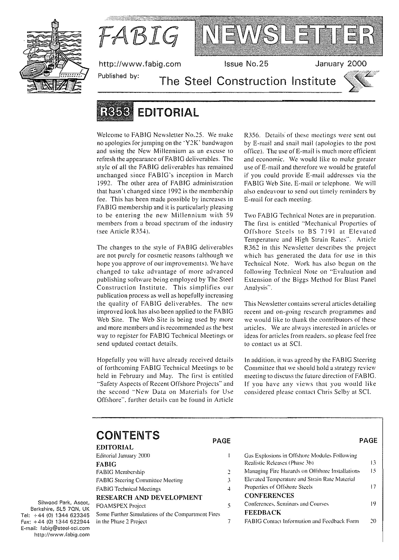 This FABIG Newsletter comprises the following: