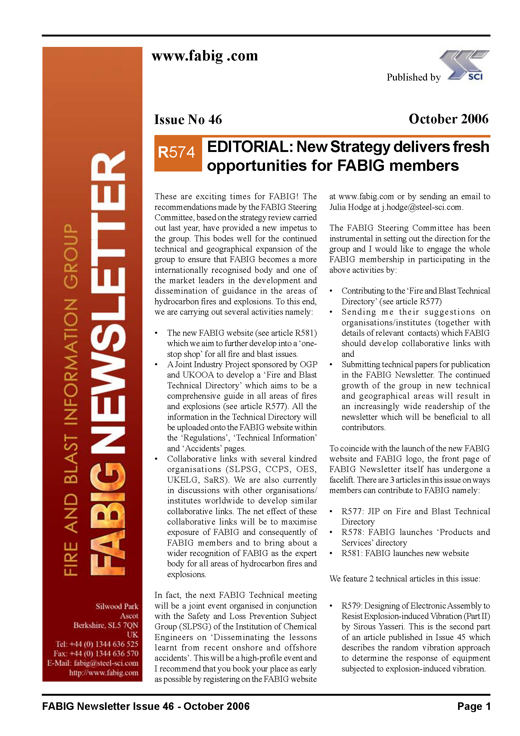 - FABIG Seeks Contribution to Fire & Blast Technical Directory