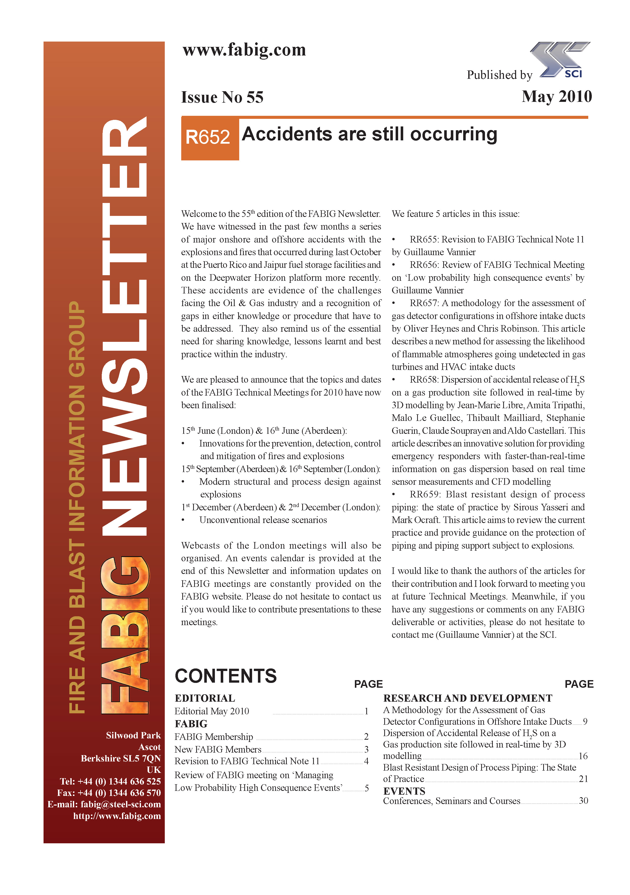 This FABIG Newsletter comprises the following: